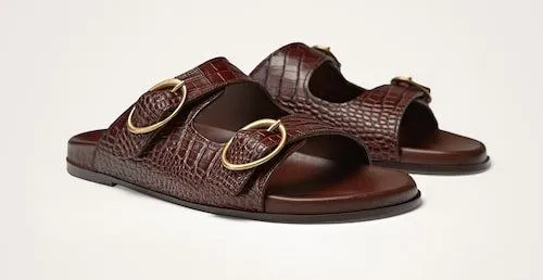 Плоские и удобные, из натуральных материалов. Не многие знают, что одежный бренд Massimo Dutti по праву может похвастаться очень качественной и относительно недорогой обувью. Перед вами модель сандалий из бычьей кожи с тиснением с эффектом крокодиловой кожи, украшенные двумя позолоченными пряжками. Выглядят дорого, стоят - 7,490 руб.