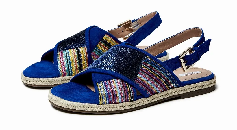 Воспоминания о Бразилии не дают покоя испанскому дизайнеру бренда Geox Эрнесто Эспозито, в летнем сезоне он предлагает почувствовать дух этой яркой страны, надев на себя пару цветных сандалий в этническом стиле. Обувь из актуальной коллекции Geox выполнена из прочного тканого полотна, напоминающего гобелен, цветной замши, кожи. Она декорирована объемной тесьмой из люрексовых нитей. Не обошлось и без главной фишки итальянского бренда – новых технологий, создающих особый комфорт. Все модели снабжены стельками с эффектом памяти. Цена сандалий – 9490 руб.