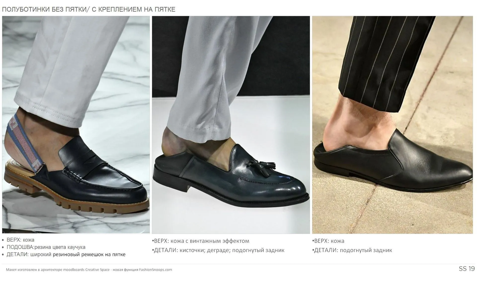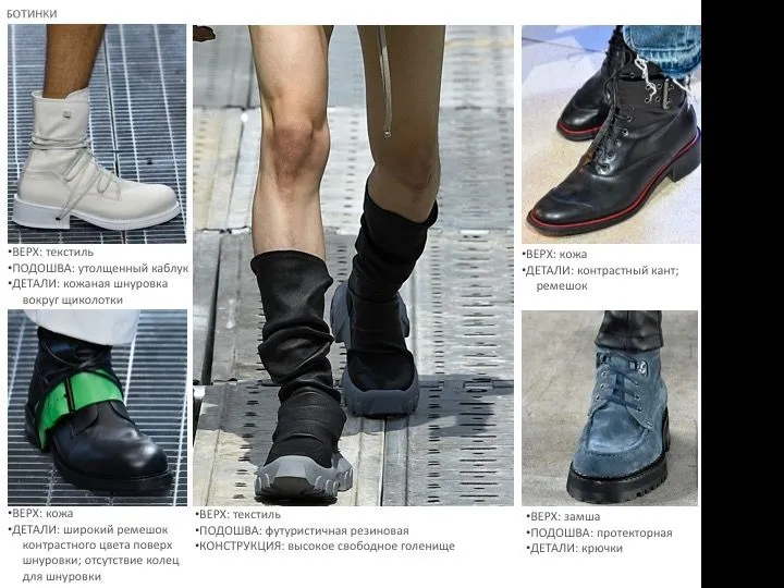 Тренд-аналитики, специалисты по прогнозам модных тенденций уже сформулировали свои концепции того, что будет носиться в следующем холодном сезоне, проанализировав сотни образов с десятков показов на неделях моды в Милане, Лондоне, Нью-Йорке и Париже. Эксперт по трендам Fashion Consulting Group Мария Щенникова подготовила специально для SR чек-лист из модной обуви. В предыдущее номере мы давали подборку из пяти трендовых моделей женской обуви для сезона осень-зима 2024/25. А в этом номере рассказываем о пятерке трендовых моделей мужской обуви, это обновленные оксфорды, лоферы с декором, туфли с ремешками (очень напоминающие женскую модель туфель «Мэри Джейн»), минималистичные сапоги, ботинки-wallabee. Статья сделана по материалам глобального онлайн-тренд-бюро FashionSnoops.com.