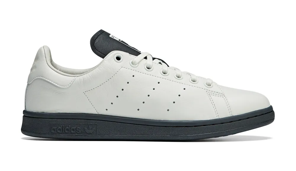 Те же пунктирные линии можно увидеть на второй версии Stan Smith из матовой кожи белого цвета, контрастирующей с черными кожаными язычками и плоской черной резиновой подошвой.
