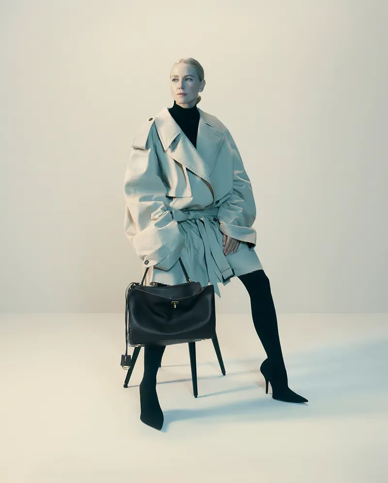 Каждая из выбранных звезд раскрывает свою идентичность. На фото модного лондонского фотографа и художника Надава Кандера героини рекламной кампании изображены на белом фоне, сидящими в кресле. Они одеты в вещи из коллекции Balenciaga - гибридные фасоны, приталенные силуэты, вечерние платья и туфли-лодочки Knife.
