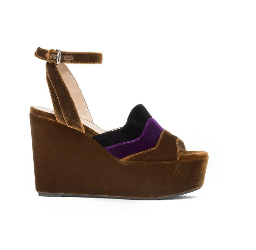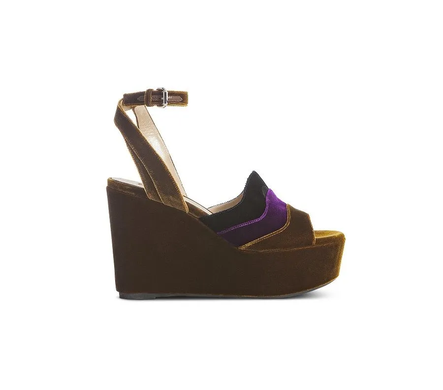 Модели представлены в нескольких интерпретациях: изящные сабо с открытым носком, босоножки на устойчивом каблуке и платформе с тонким ремешком на лодыжке. Цветовая палитра варьируется от угольно-чёрного до шоколадного, насыщенного бордового, баклажанового и пепельно-серых оттенков.