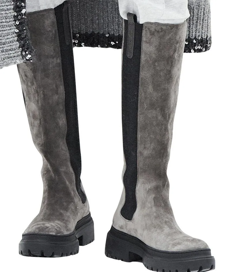 В новой женской коллекции итальянского люксового бренда Brunello Cucinelli, онлайн-презентация которой в рамках Миланской Недели моды состоялась 24 февраля, многослойные уютные вещи из трикотажа, кашемира, мохера и шелка неожиданно сочетаются с сапогами и ботинками, прекрасно подходящими для походов в горы и прогулок по пересеченной местности.