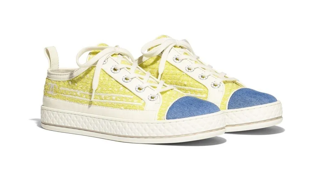 Цены на модели варьируются от $850 за классические кожаные кроссовки лимонного цвета до $1025 за модели из твида, шелка и лайкры.
