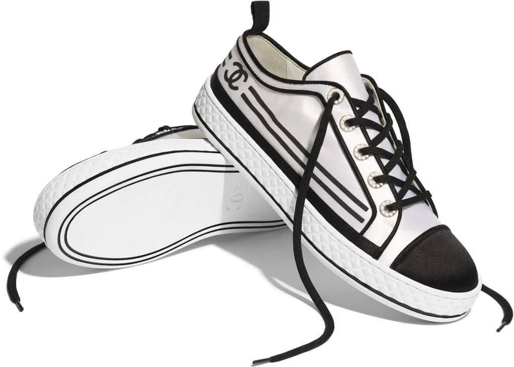 Люксовый бренд Chanel объявил о выпуске линейки кроссовок в сезоне весна-лето’19. В нее вошли три модели классических низких кроссовок и кед с верхом из твида и денима, или с верхом из шелка, из телячьей кожи, а также три модели беговых кроссовок, две из них – чанки-кроссовки с верхом из замши и из лайкры, а также модель более обтекаемой формы с верхом из сочетания сетки и лайкры.