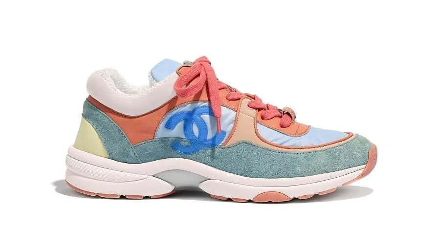 Среди представленных моделей классические низкие кроссовки с верхом в пастельных тонах, со шнурками бледно розового цвета, вероятно, имеют больше всего шансов завоевать женские сердца. Хотя белые кроссовки с контрастными черными полосами, с белоснежными буквами Chanel на сетчатой вставке и отпечатанными лого бренда на подошве, тоже выглядят шикарно.