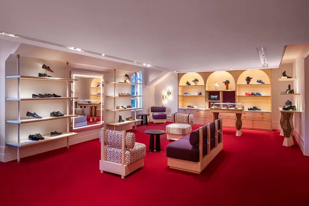 По задумке обновленный интерьер бутика должен «воплощать эклектичное очарование и уютную атмосферу» парижской квартиры дизайнера Кристиана Лубутена.