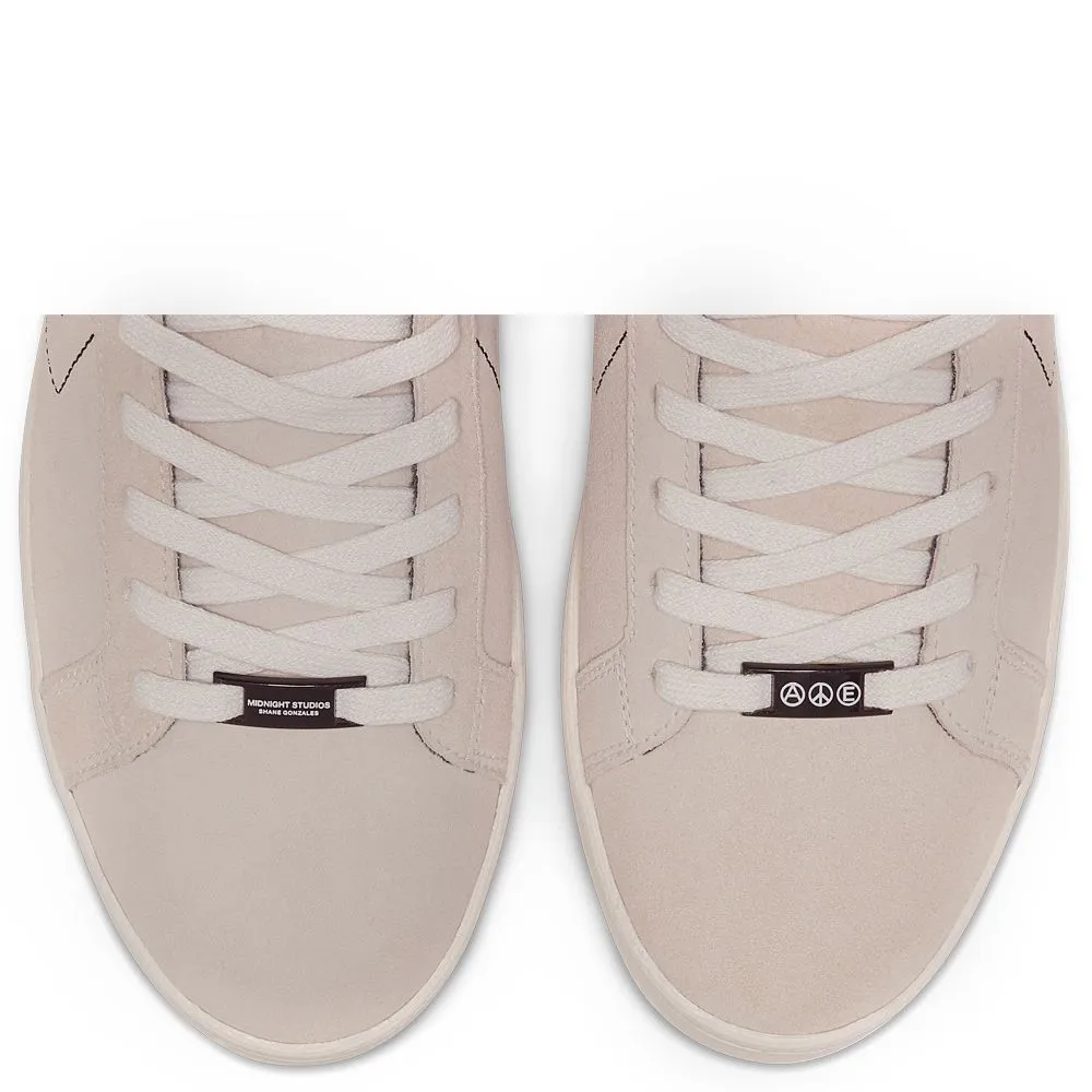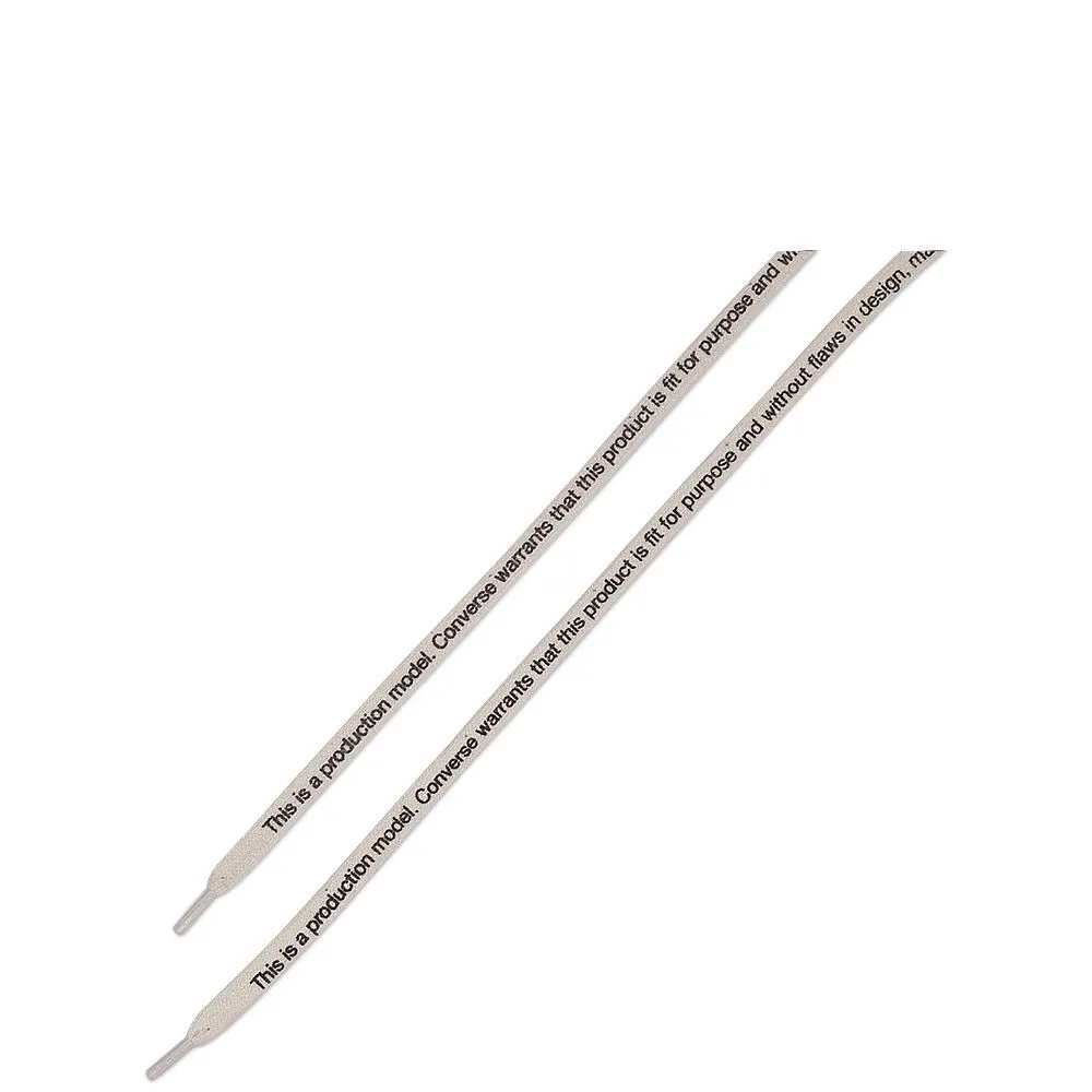 Кеды произведены из замши, бежевый силуэт украшает контрастная прострочка в форме логотипа Converse – Star Chevron. Помимо функциональной шнуровки модель дополнили длинными шнурками с надписями – отсылка к фирменному стилю Midnight Studios. Они завязываются вокруг щиколотки и выступают как отдельный элемент дизайна.