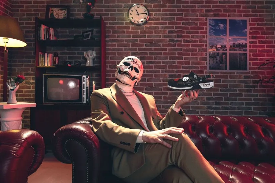 Изображения маски-черепа, сердечка и надпись с именем исполнителя стали отличительными элементами дизайна новых сабо, вышедших в коллаборации Crocs и французского музыканта Владимира Кошмара.
