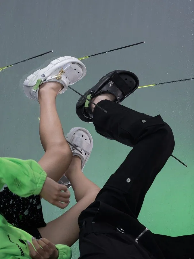 В коллаборации Crocs с китайским модным брендом, постоянным участником Недель моды, Sankuanz вышла коллекция из трех уникальных моделей. Она создана в концепции Shoes for Shoes от SANKUANZ.
