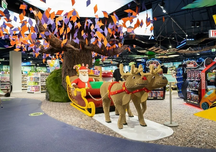 Помимо развлекательной части в магазине представлено более 40 бренд-зон крупных производителей и лицензиаров детских игрушек и других товаров для детей. В их числе Lego, Disney, Mattel, Hasbro, Gulliver, «Симбат», Universal, Warner.