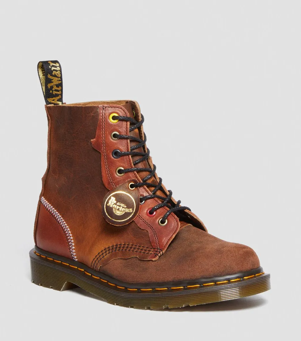Ботинки Dr.Martens 1460 с восьмью люверсами изготовлены из нескольких видов кожи известных кожевенных заводов, включая замшу Desert Oasis, Classic Oiled Shoulder и Wax Commander от C.F. Stead (UK) и кожу Dublin от Horween (Chicago). Каждый тип кожи служит разным целям, несмотря на то, что коричневый цвет и оттенок загара создают в целом гармоничный образ. Цена пары на сайте бренда - £239.00.