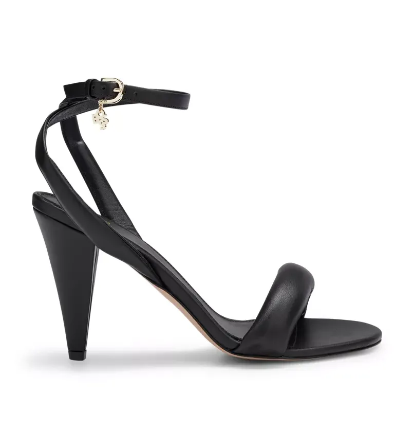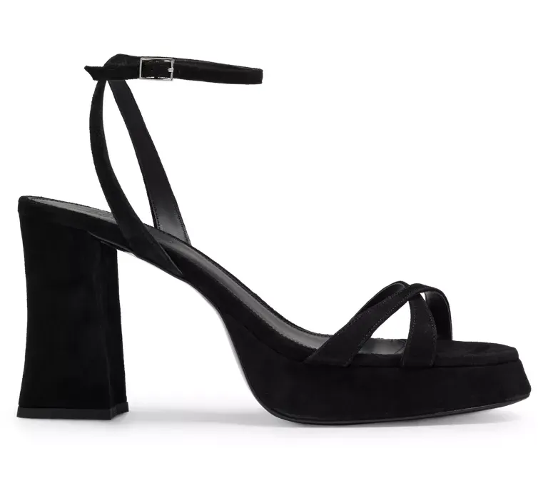 Американская супер модель Джиджи Хадид представила новую коллекцию немецкого модного бренда Boss. На фото кампании Хадид одета в черный брючный костюм свободного кроя, на ногах модели черные сандалии из новой женской коллекции бренда весна 2023.