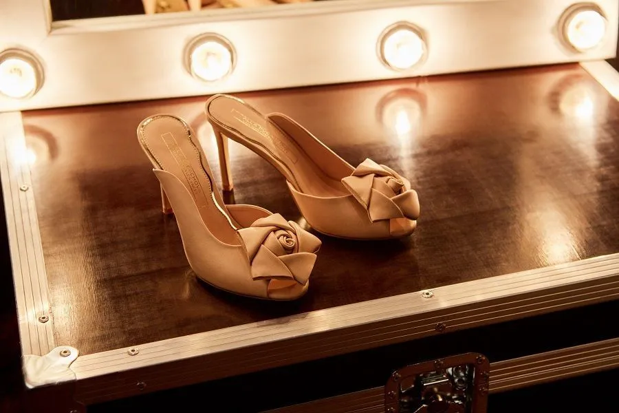 Именно поэтому в коллекции обуви превалирует алый цвет, также и главным украшением обуви, сумок и аксессуаров стал бутон розы. При этом символом капсулы стал скрипичный ключ и ноты, изображение которых также появляется в виде принтованных рисунков на изделиях.