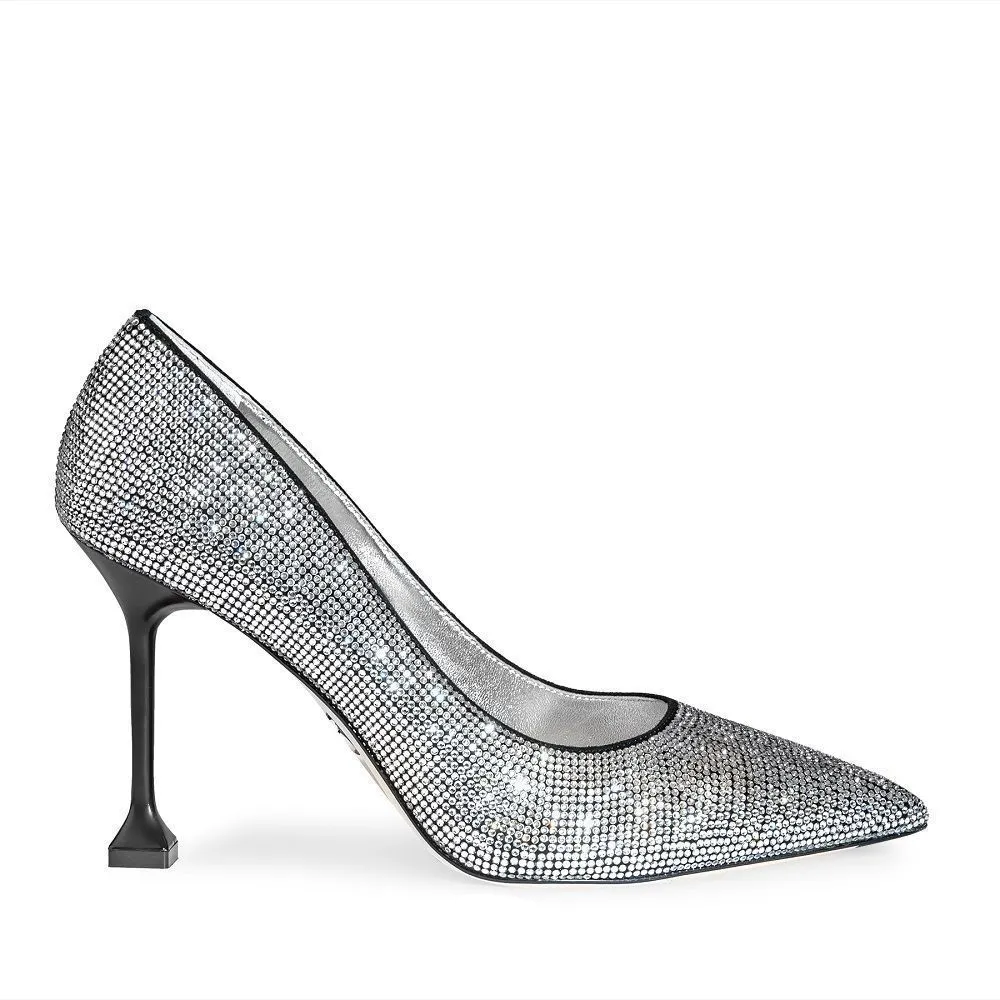 Разнообразные сумки и аксессуары коллекции в тон обуви также сияют стразами и серебром.