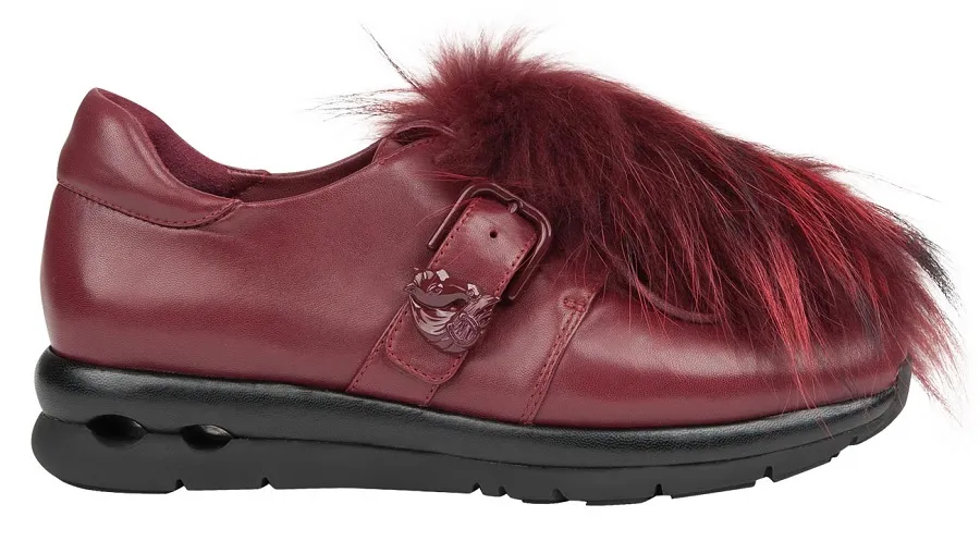 В коллекции Alla Pugachova осень-зима 2017/18 - элегантные туфли, украшенные модными рюшами, персонализированными аксессуарами и меховыми деталями, изящные ботильоны, сапоги со шнуровкой, кроссовки. Цветовая гамма соответствует сезону. Бордовый, синий и белый соседствуют с основными зимними цветами - черным и темно-коричневым. Акцентными трендовыми цветами выступают серо-голубой и горчичный. Одним из ключевых осенних трендов новой коллекции станет отделка мехом. Это цветной мех лисы в цветах коллекции – бордовый, белый, черный и голубой.