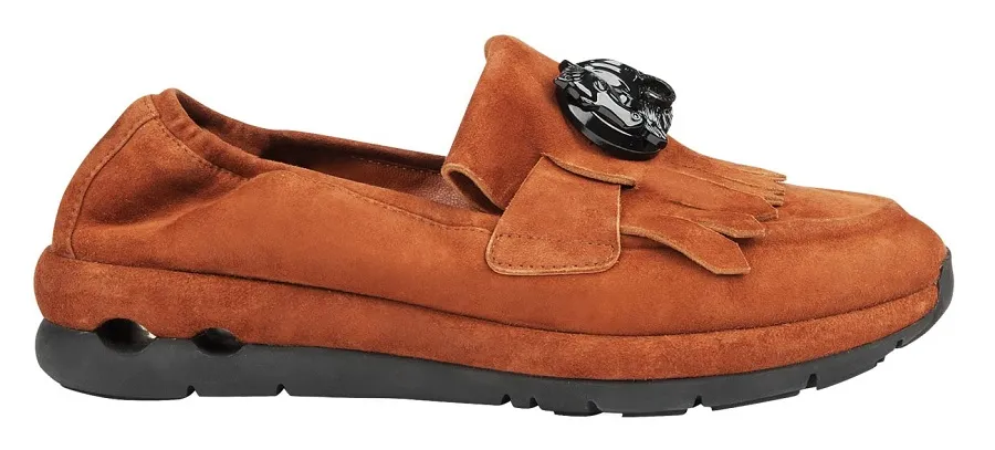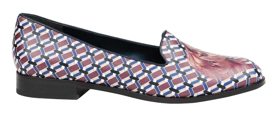В аналогичной цветовой гамме выполнен фирменный принт на коже, который присутствует в качестве орнамента как в обуви, так и в аксессуарах.