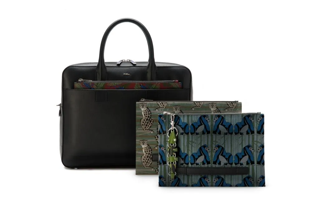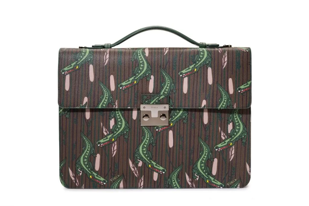 Коллекция портфелей Furla Atlante – это оплот строгости и стиля, но с нотками иронии. Металлическая застежка отсылает нас к легендарной женской сумке-иконе Metropolis, но в то же время своей правильной формой она напоминает, что перед собой мы видим строгий портфель для делового мужчины. Atlante – это сочетание практичности с фантазией: портфель доступен не только в классической черно-белой версии, но и украшен принтами разных животных.