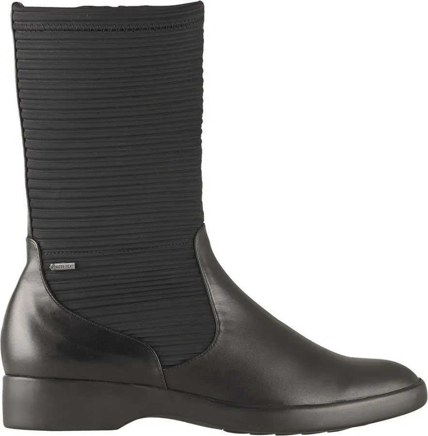 В укороченных сапогах технология Gore-Tex® дополняется теплой подкладкой. Новые фасоны обуви городского стиля отличает ребристая подошва. Представленная в коллекции обувь на основе Gore-Tex® имеет разную высоту каблука - от ботильонов на плоской подошве до высоких женственных сапог. Из других преимуществ новых моделей можно отметить то, что при их производстве использовалась кож
