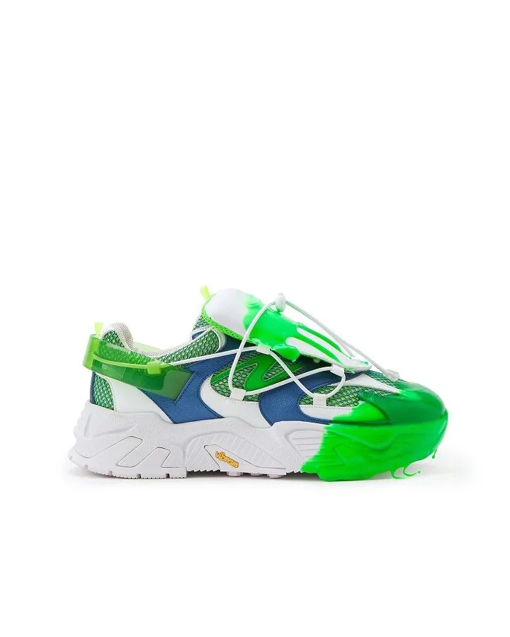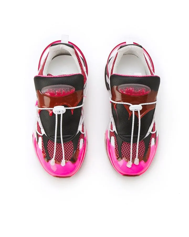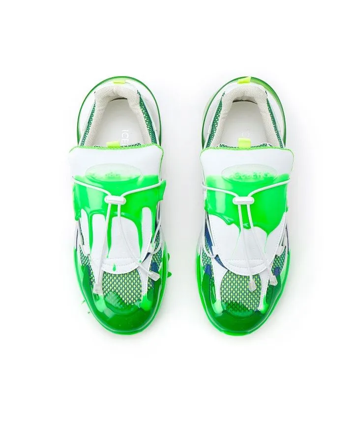 В весенней коллекции итальянского бренда одежды, обуви и Iceberg появились ультра позитивные неоновые кроссовки, верх которых украшают как бы растекшиеся капли цветного воска.
