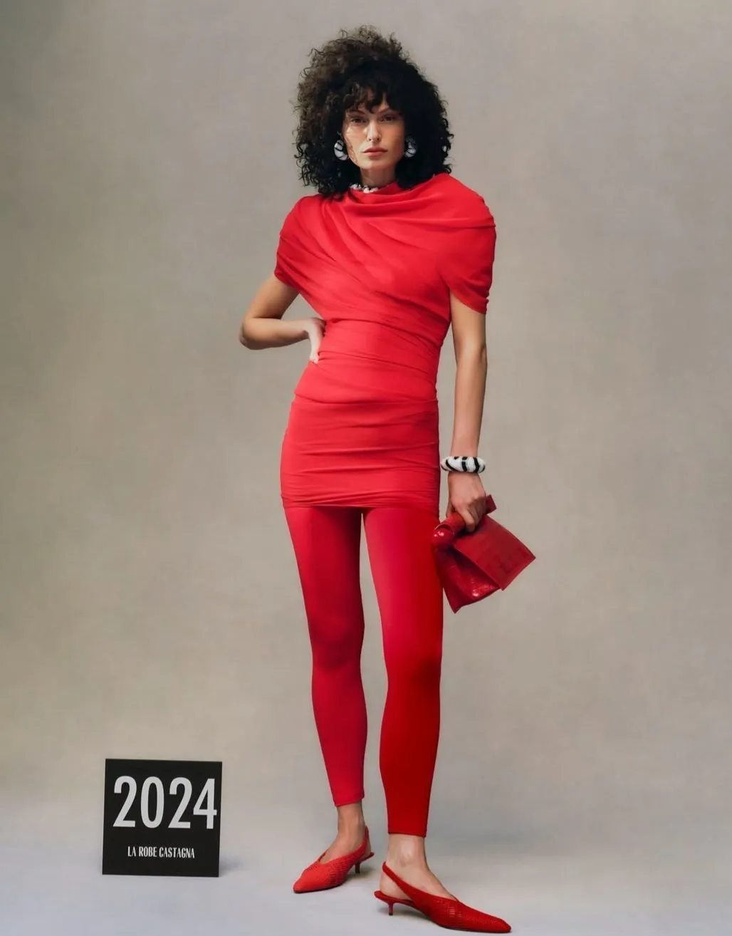 Каждый образ передает фирменный стиль марки - геометрия «круглый-квадрат», драпировка и минимализм, силуэт и архитектурные формы, прозрачность и ткани из одного материала, графические точки и полосы, двойное вдохновение великой моды 1980-х и кутюр 1950-х годов.