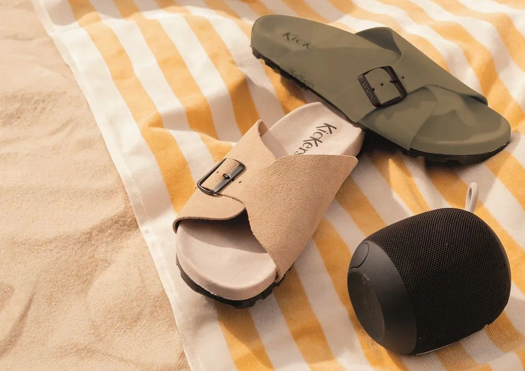 Kickers тяготеет к натуральным материалам, таким как кожа и пробка, именно они стали основными в новой коллекции женской обуви лето '24, в которую вошли сандалии и сабо необычных расцветок, в том числе природных оттенков — песочно-бежевого и оливкового.