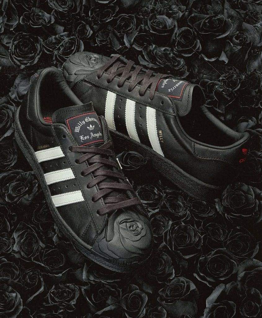 А верх кроссовок Adidas украсился розами в коллаборации Adidas Originals с калифорнийским дизайнером Вилли Чавария.