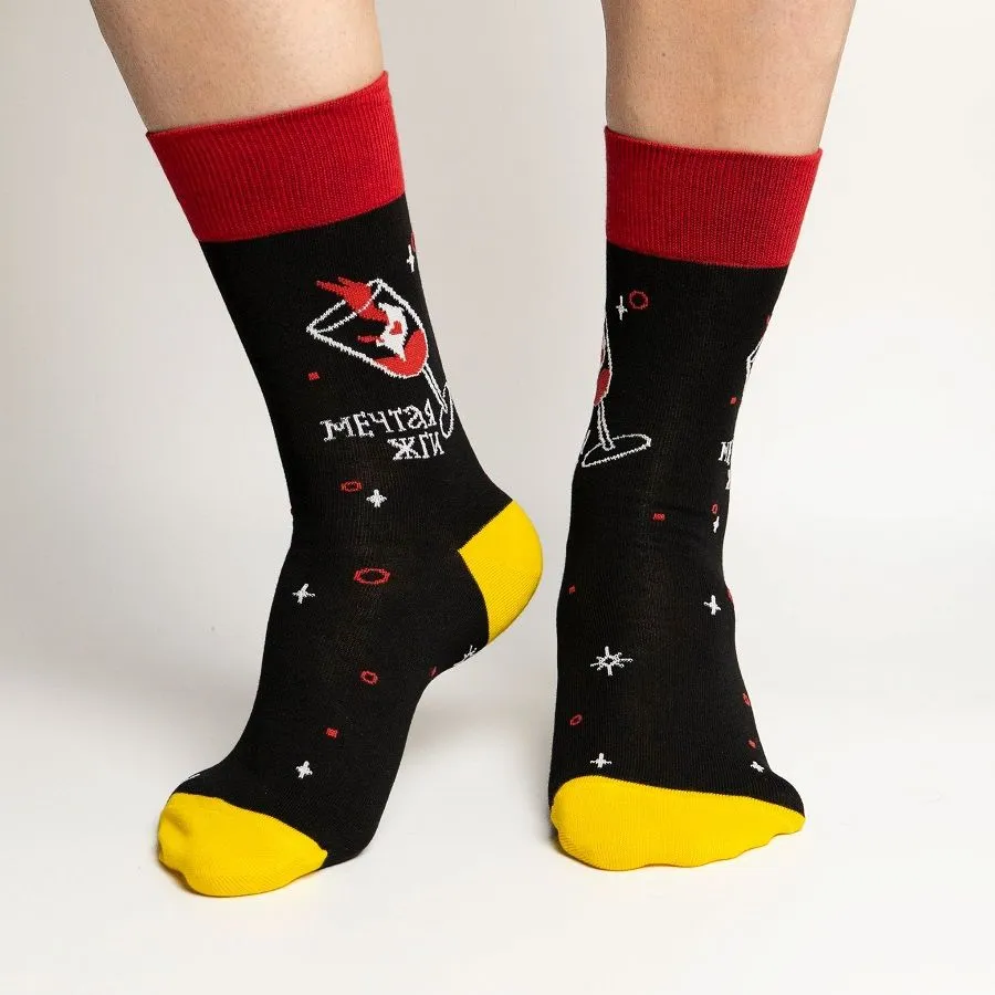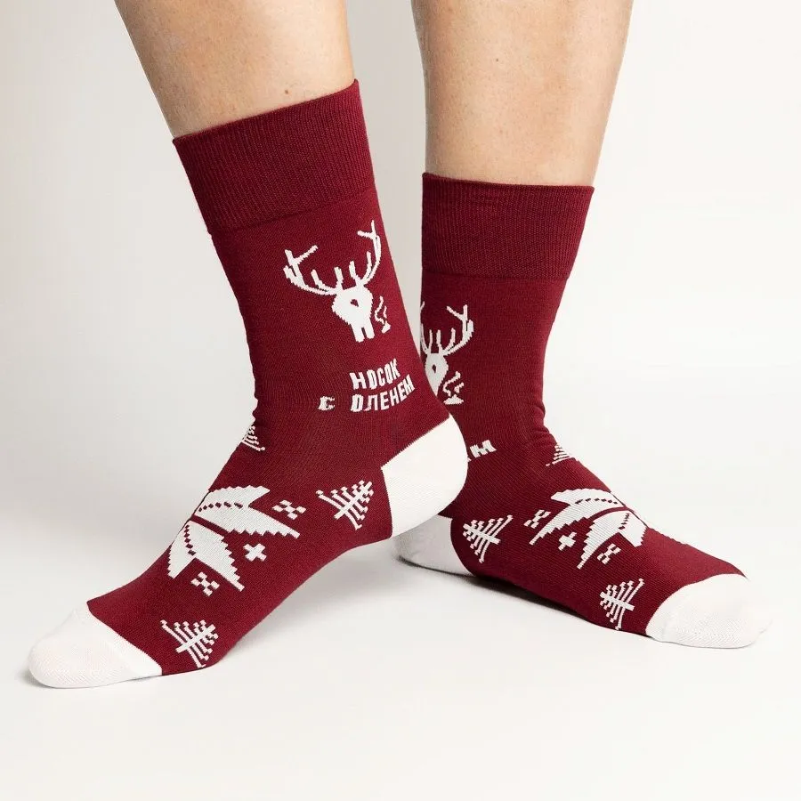 Первая часть Новогодней коллекции включает в себя классические для праздника сюжеты — пары с имбирными пряниками, новогодним узорами, зимним пейзажем и детскими игрушками. Здесь же можно найти Деда мороза и всевозможные разновидности оленей, а также носок-открытку «Мечтая жги» с отсылкой на традицию сжигать бумажки с желаниями под бой курантов и топить их в бокале шампанского.
