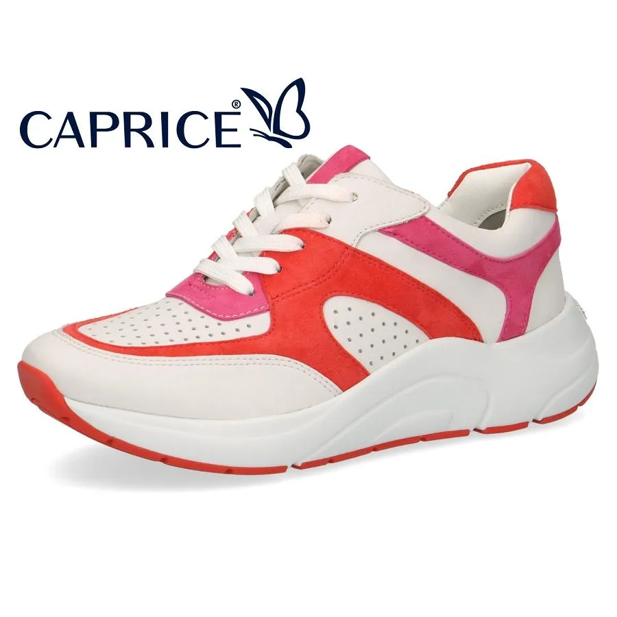 Модели изготовлены из высококачественной натуральной кожи в различных цветовых сочетаниях – яркий желтый, дерзкий коралловый, классические белый, черный, синий. Вкладная инновационная стелька OnAir гарантирует дополнительное удобство и комфортный микроклимат внутри обуви. В пяточной части кроссовок размещен металлизированный логотип Caprice. Модели представлены в нескольких вариациях - классика, с перфорацией и с функциональной молнией. Рекомендованная розничная цена 6490 рублей.