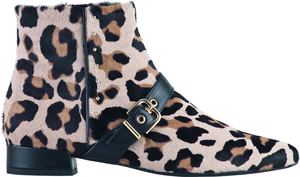 Главным мотивом коллекции стал рисунок «под леопарда». С этим рисунком представлены самые разнообразные фасоны обуви, в том числе и на каблуке-шпильке. Обувь украшена ремнями и пряжками.