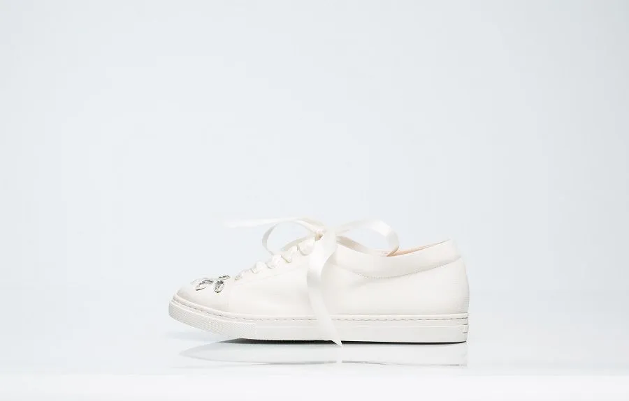 Этой весной в сегменте свадебной обуви появился новый бренд. Первая коллекция обуви для невест Milky Aisle литовского дизайнера Пинко Катерины включает 7 моделей, среди которых помимо традиционных белоснежных туфель лодочек и босоножек, также присутствуют балетки и кроссовки.