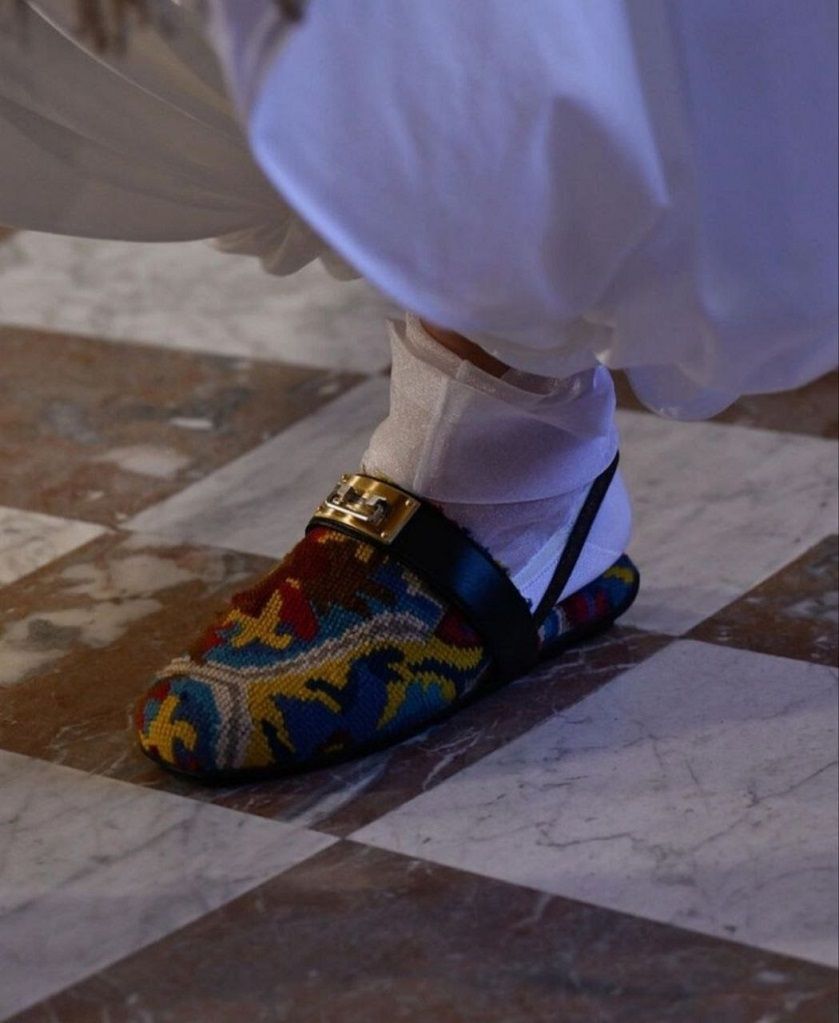 Фоном для показа коллекции на Неделе моды стали дворцовые залы Лувра, в которые на момент креативный директор Louis Vuitton Николя Жескьер представил домом, в котором уместно перемещаться в уютной домашней обуви.