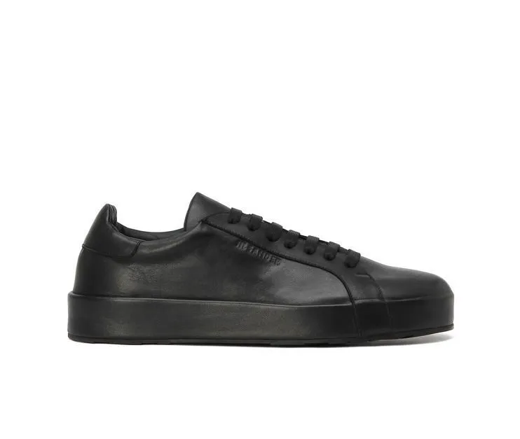 Новая коллекция обуви люксовой марки Jil Sander сезона осень-зима 2016-2017 выдержана в стиле ретро-гламура. Ключевые элементы – мягкие теплые цвета, кожа и бархат, высокая платформа. Бордовые бархатные босоножки на платформе, ботильоны на толстом каблуке сине-серого цвета, черные кожаные полуботинки с контрастной синей подошвой, черные лакированные дерби, стильные серебристые кеды из мягкой телячьей кожи – все это must-have осени 2016.