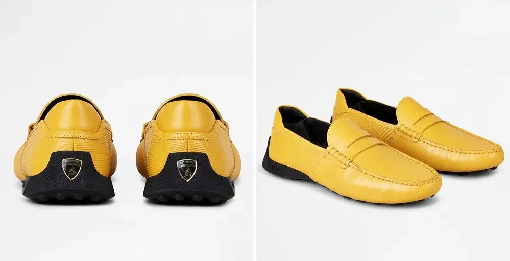 Фирменные мокасины Tod's Gommino повторяют окраску суперспортивных автомобилей Lamborghini. На подошве обуви характерные резиновые выпуклости стали более крупными, они повторяют цвет пятки или верха.
