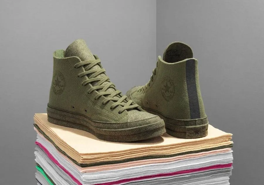 На этот раз кеды обрели мягкий войлочный верх разнообразной расцветки. Войлочные кеды смотрятся очень оригинально даже в естественном для этого материала сером цвете, и совсем уже вычурно и необычно в сочетании ярких оттенков розового, голубого и зеленого, атакже в сочетании хаки и оранжевого. Дополнительных деталей в дизайне не потребовалось, оригинального материала и цветового разнообразия оказалось достаточно для того чтобы классика Converse смотрелась не просто свежо, но даже несколько революционно.