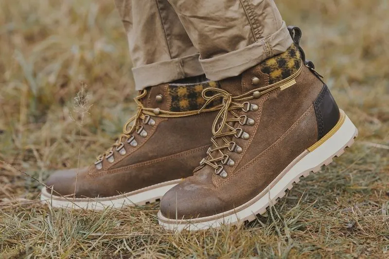 Среди моделей мужской коллекции абсолютным хитом являются утепленные кожаные ботинки Piligrim. Модель представлена в коричневом «коньячном» цвете, верх ботинка утеплен красивой фетровой вставкой с клетчатым рисунком.