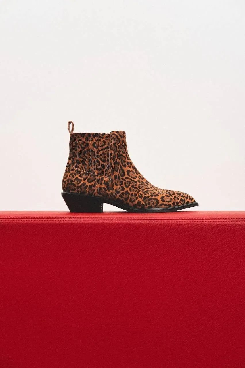 Казаки выполнены из натуральной замши с леопардовым принтом. Широкий устойчивый каблук обеспечивают комфорт, а и резинка «челси» - легкость при надевании обуви. Модель украшена вышивкой в стиле вестерн в носочной части и тиснением логотипов Povod x BNPRT на стельке и подошве. Стелька и подкладка казаков выполнены из натуральной кожи шевро.