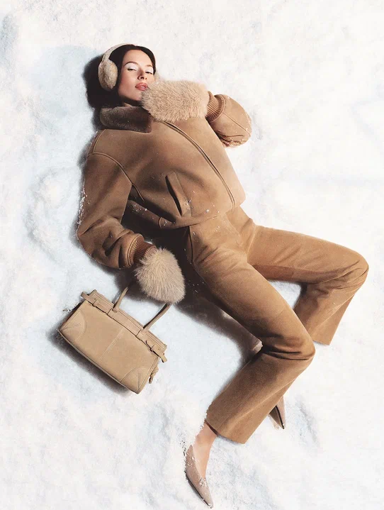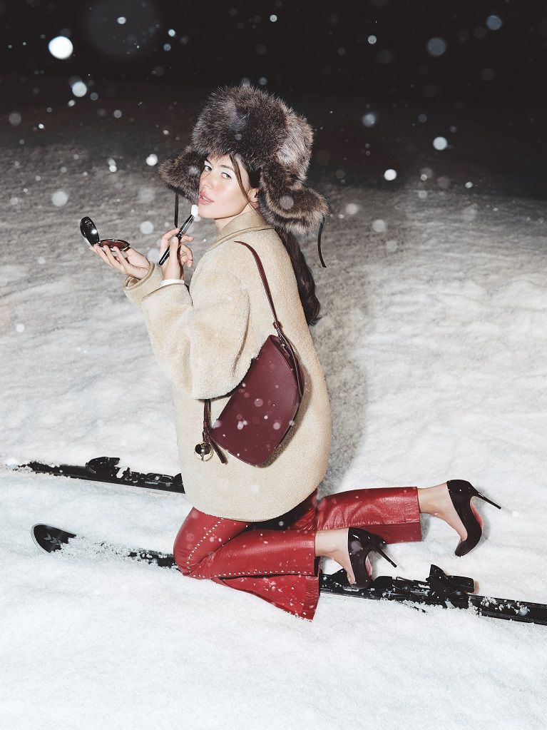 Лёд и снег в кадрах становятся материалом, который хранит и обрамляет одежду, становится фоном для демонстрации сумок и обуви. В рекламной съемке обыгрывается тема зимних видов спорта и горнолыжных курортов.