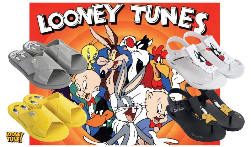 Концепция обеих марок тесно связана с популярным мультсериалом компании Warner Bros. В моделях использованы образы персонажей из культового мультфильма – кролика-весельчака Багза Банни, селезня Даффи Дака, кота Сильвестра, канарейки Твитти, пришельца с Марса Марвина и Тасманского Дьявола, который умеет превращаться в торнадо. Их забавные мордашки размещены прямо на сандалиях или напечатаны в виде принтов на стельках.
