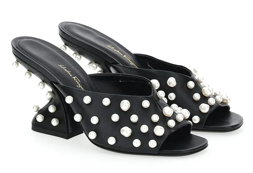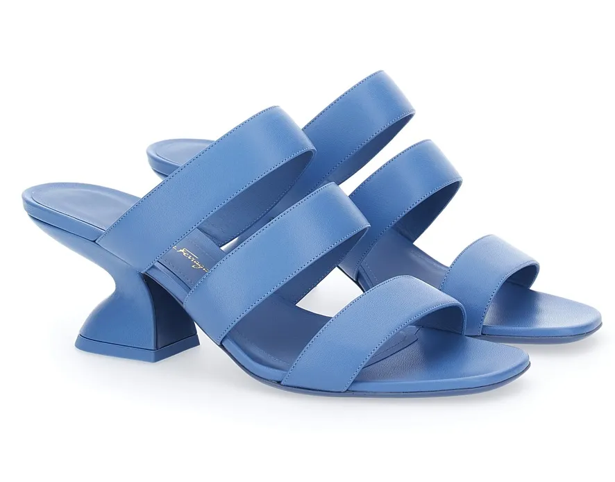 Обувь Salvatore Ferragamo 2021 года с F-каблуком повторяет изогнутую форму каблука оригинала, некогда созданного отцом-основателем бренда. Уникальная форма каблука создает впечатление, будто ступня владельца обуви летит по воздуху.