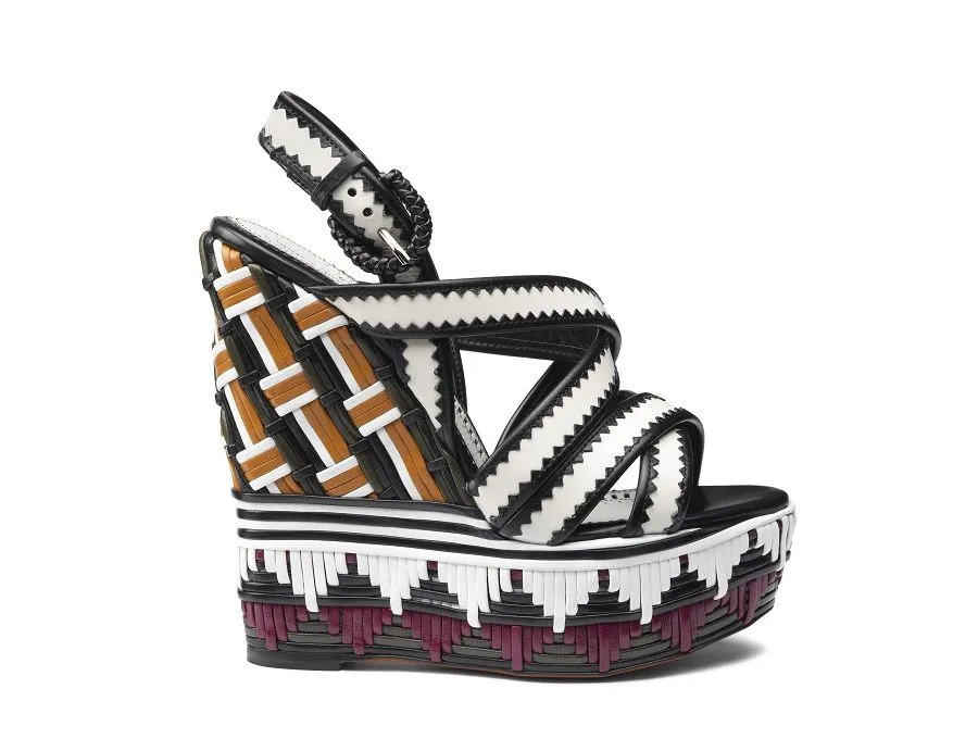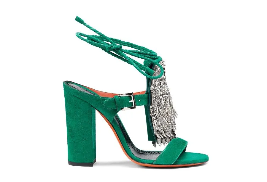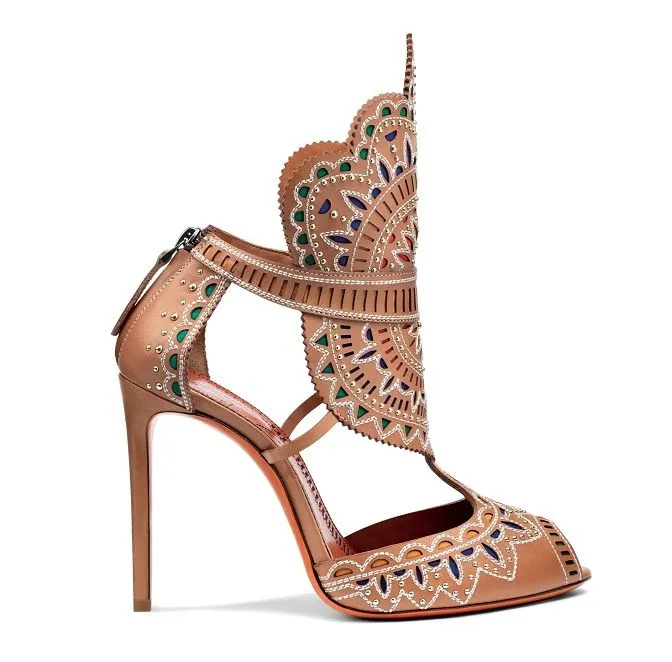 Модели представлены на любой вкус: замшевые сандалии или комфортные тапочки, босоножки на танкетке расшиты бисером; классические ботинки из питона украшены разноцветным принтом. Каблуки на туфлях и брогах украшены резьбой в изысканном мавританской стиле. Стильные босоножки и лоферы дополняют кисточки, расшитые монистами — монетами, бусинами, цепочками.