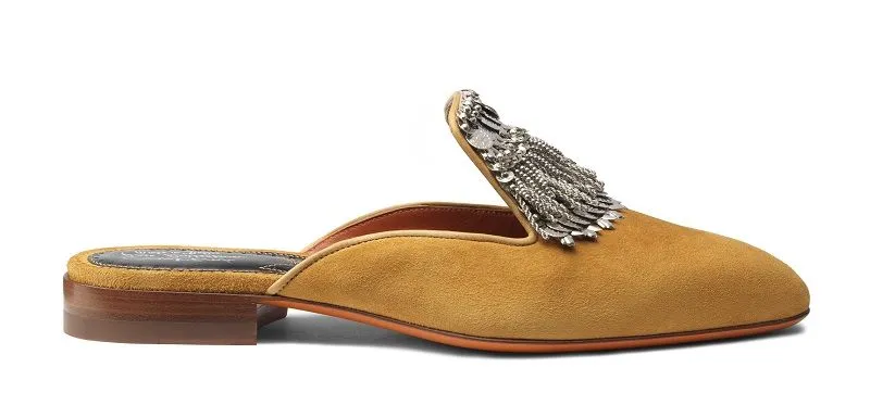 Сочетание мужских и женских элементов, столь характерное для модного обувного дома Santoni, вновь выходит на первый план. Новая коллекция — ода гламурному шику, воспетая в драгоценных и ослепительных материалах. Преобладают марокканские настроения: в женской коллекции гармонично сочетаются цвета и материалы. Тактильные плетения, ткани, и инкрустации позволяют перенестись в солнечный Марракеш.