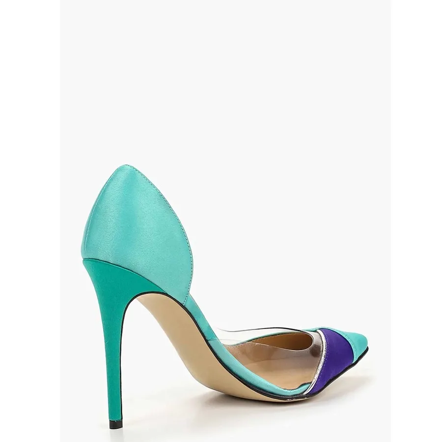 Для создания модели обуви PR-сотрудниц дизайнер выбрала сочетание двух цветов бирюзового и фиолетового, а в качестве материалов верха остановилась на натуральном шелке и пластике. Модель поставлена на высокий каблук и идеально подходит для посещения светских мероприятий.