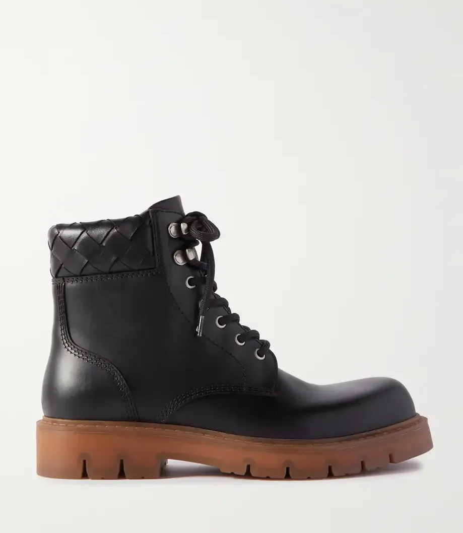 Timberland сделал ход конем и выпустил свои шестидюймовые ботинки, использовав в дизайне фирменное плетение Bottega Veneta “Intrecciato”.