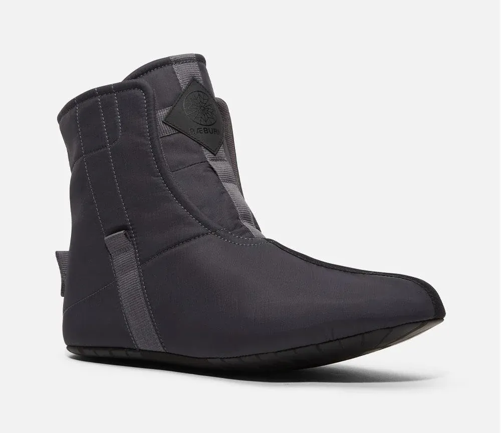 Обувь имеет внутренний съемный сапожок с утеплителем PrimaLoft®, его можно снять и носить как тапочки (для дополнительного сцепления на внешней стороне ступни предусмотрена силиконовая трафаретная печать). Ботинки оснащены прочной резиновой подошвой для сцепления на сколькой или неровной поверхности.