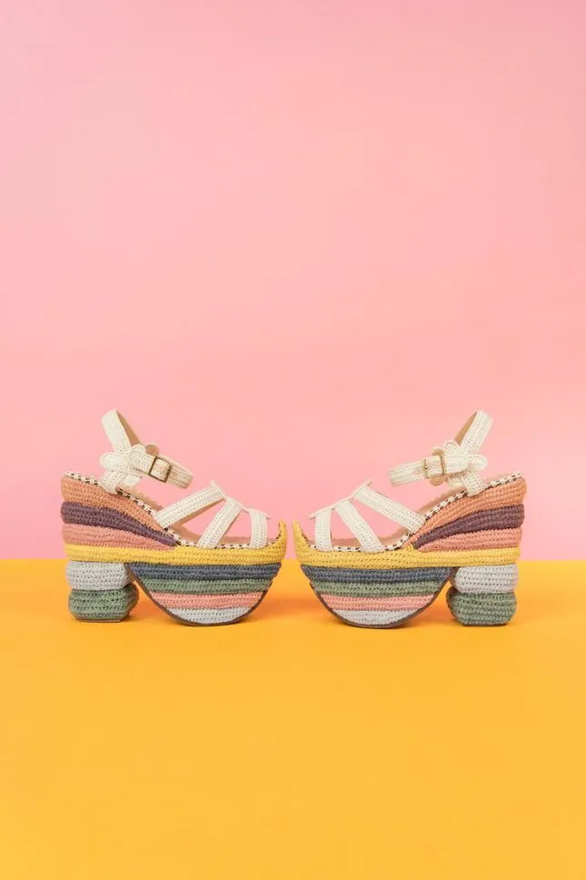 Мастер с 1920 годов экспериментировал с разными альтернативными материалами при создании модной обуви и одежды. Свежим экспонатом выставки стала новая коллекция обуви 42 Degrees, в которой главным элементом является фирменный символ модного дома – радуга, появившаяся впервые в коллекции бренда в 1938 году.