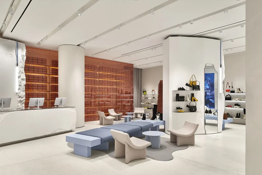 Как мы писали ранее, EKONIKA снова меняется. На днях состоялось открытие флагманского магазина обувной розницы в столичном ТЦ «Афимолл» в обновленном концепте. Бренд ушел от карамельных тонов и атмосферы женской гостиной, и создал чуть более холодный по цветовой гамме, но просторный, открытый и очень современный интерьер.