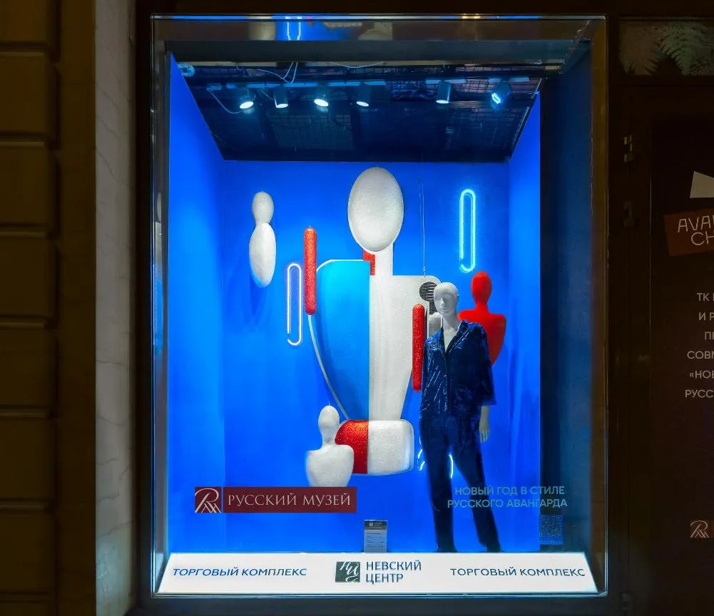 Торговый комплекс «Невский Центр», расположенный в центре Санкт-Петербурга, на пересечении Невского проспекта с улицей Восстания, напротив Московского вокзала, провел сезонное обновление витрин - совместно с Русским музеем реализовал концепцию «Новый год в стиле русского авангарда». Вдохновением для зимнего оформления витрин послужили известные работы художников, представленные в Русском музее.