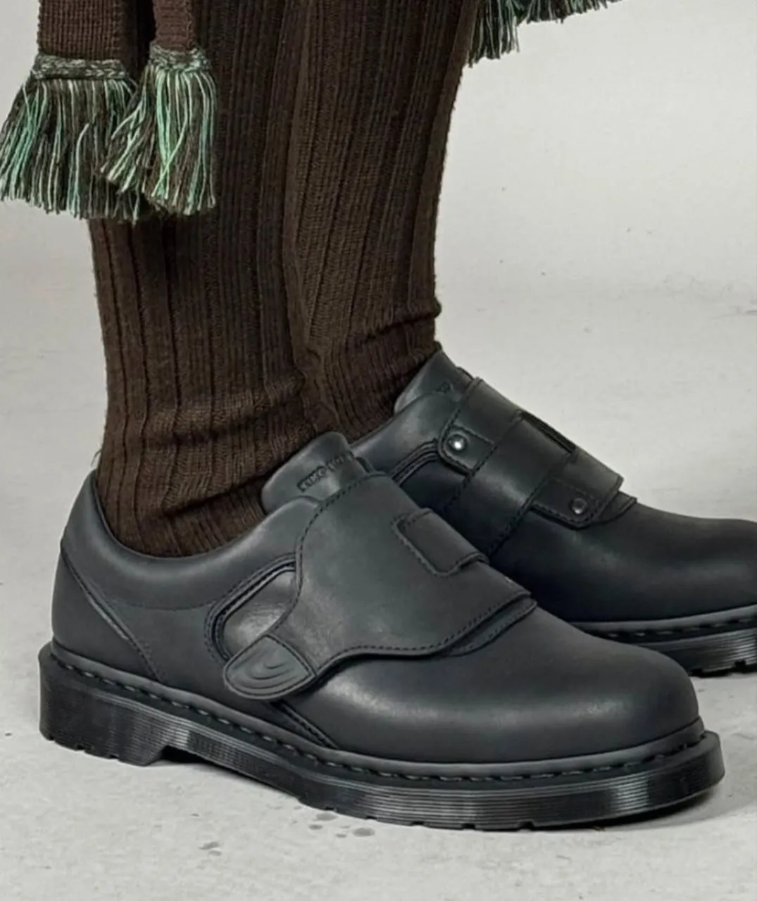 Встречайте новую коллаборацию Dr.Martens с Kiko Kostadinov! Обувь пошита из переработанной кожи и является частью лимитированной серии Made In England. В капсульную коллекцию вошли женские туфли с верхом из тисненой зеленой замши и лакированной кожи на шнуровке, а также мужские черные кожаные рабочие ботинки с застежками на липучках.