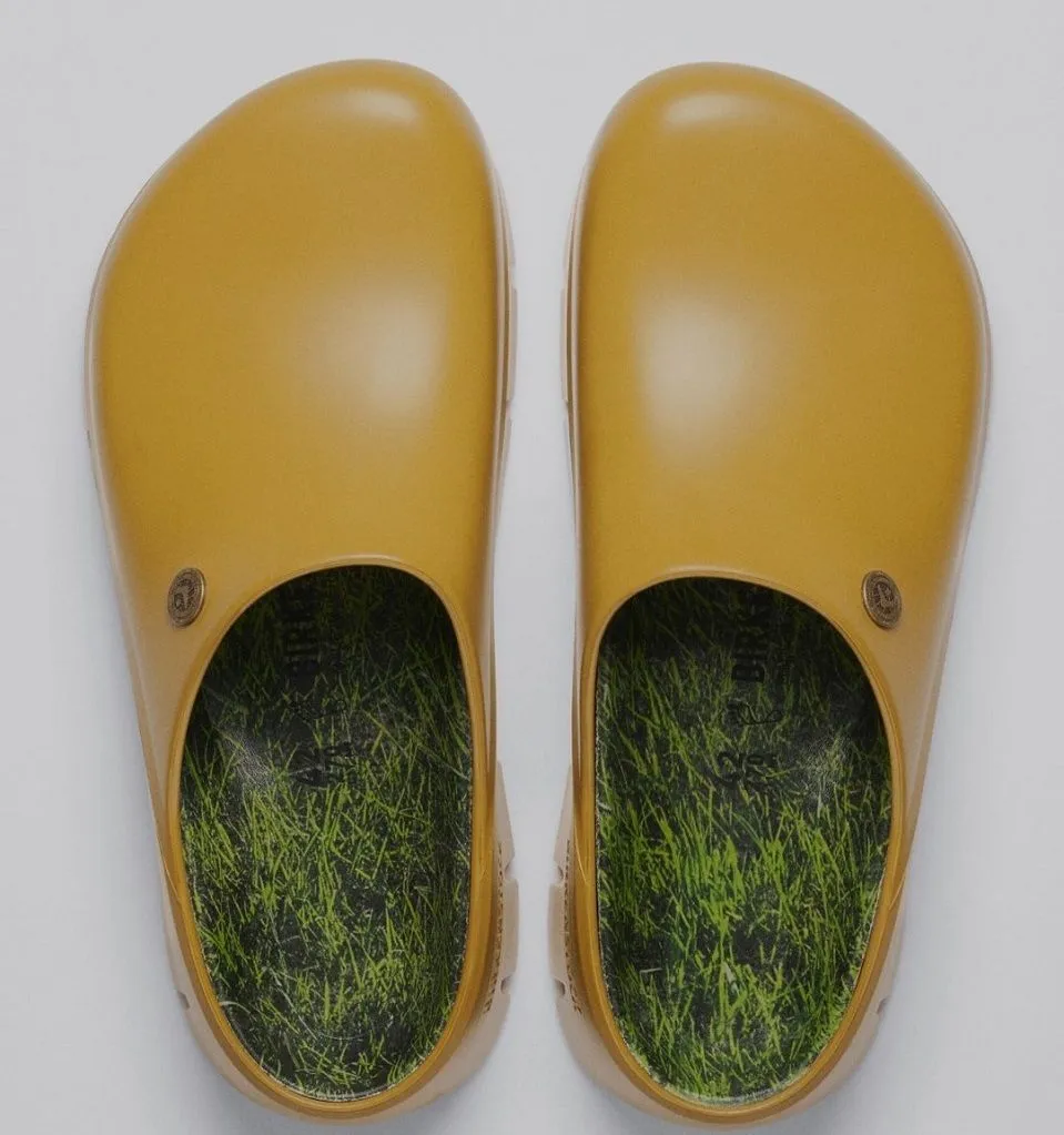 Для модели Садовник в силуэте Super Birki 2.0 был выбран резиновый верх в бежевом цвете и стелька с принтом в виде травы.